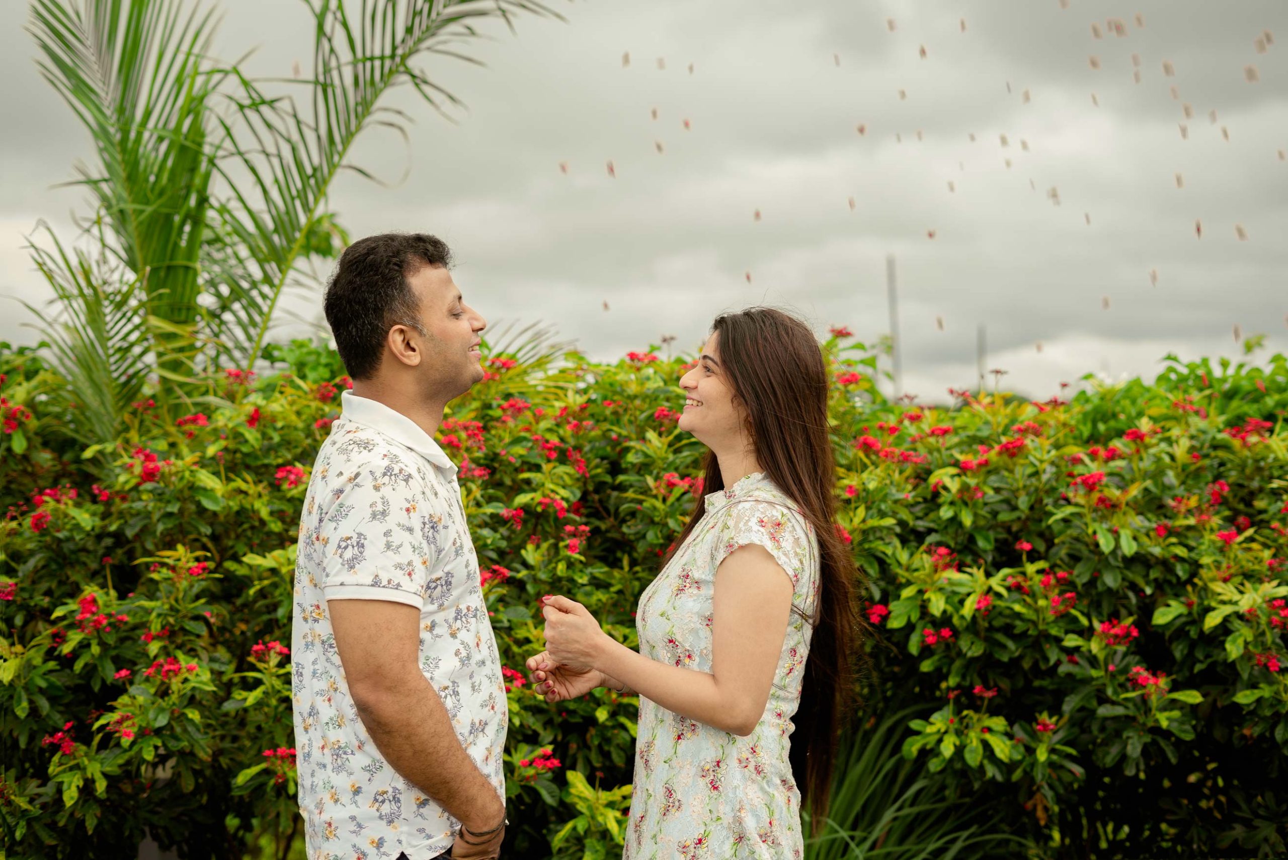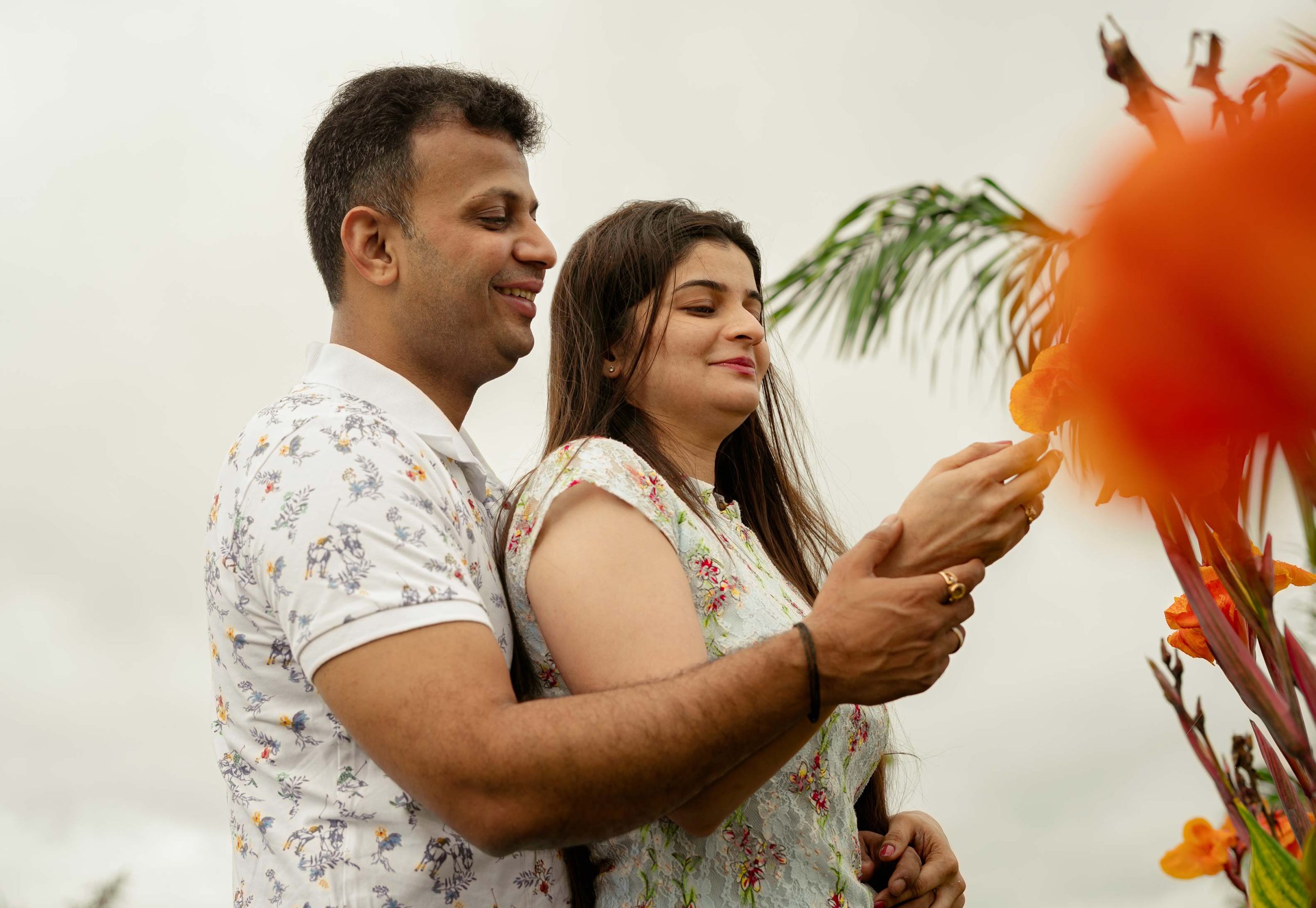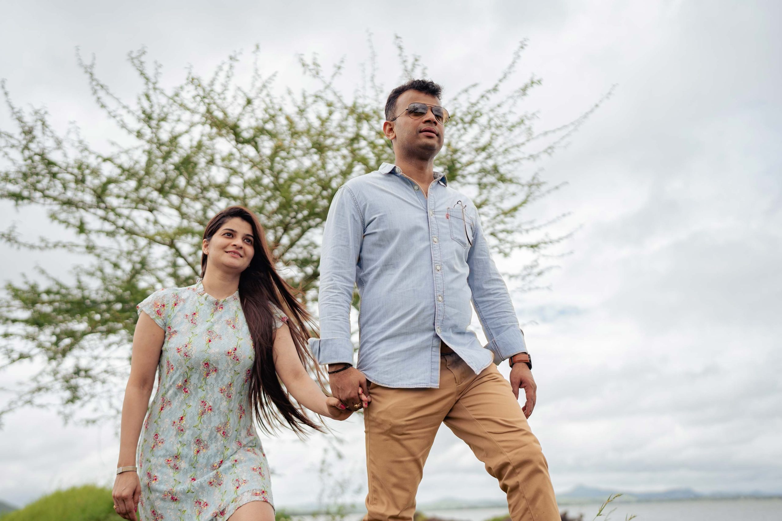 Navin and Rakhi’s love story is as timeless as a perfect day. During their pre-wedding shoot, nature seemed to align with their romance. The soft breeze, warm sunlight, and gentle rustling of leaves created an ideal backdrop for their connection. Navin’s mischievous grin and Rakhi’s radiant smile lit up every frame, with playful moments—like him teasing her about getting her hair caught in the wind—showcasing their joyful bond. As they walked hand in hand, it felt like their love blossomed with each passing moment, creating memories as enduring as their bond.