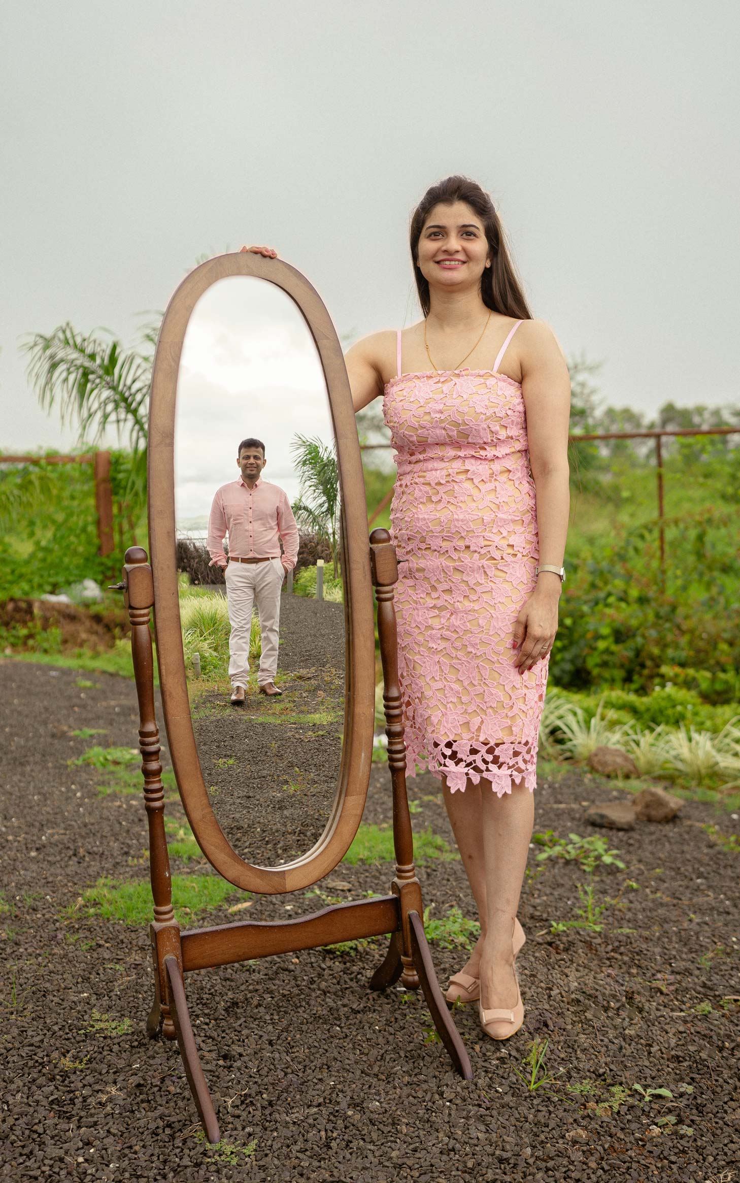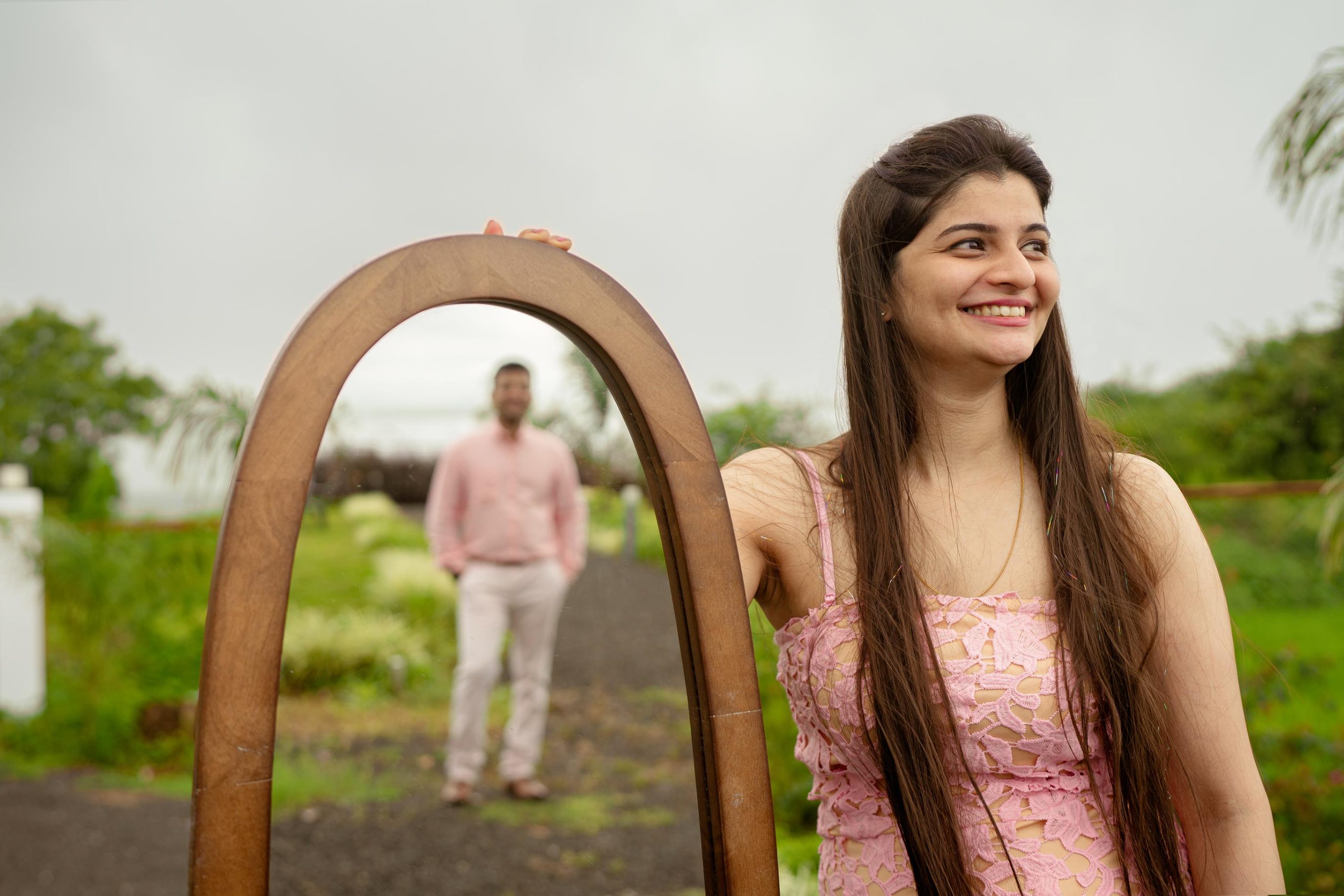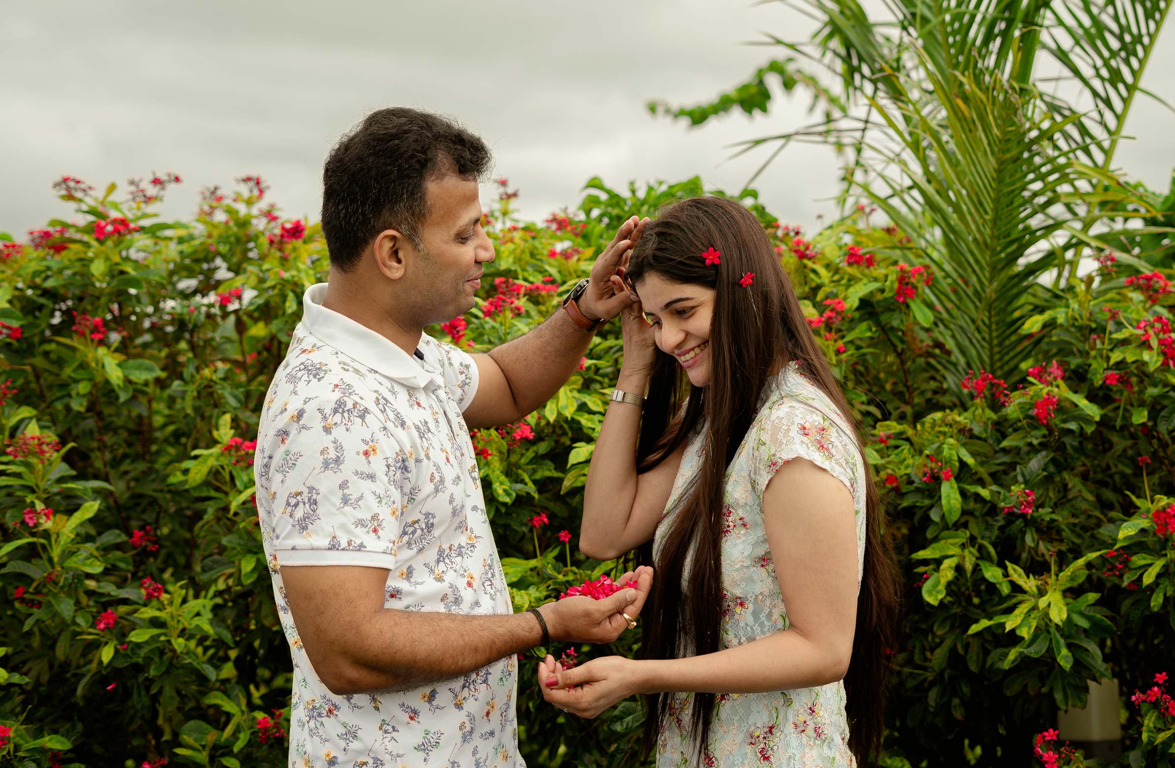 Navin and Rakhi’s love story is as timeless as a perfect day. During their pre-wedding shoot, nature seemed to align with their romance. The soft breeze, warm sunlight, and gentle rustling of leaves created an ideal backdrop for their connection. Navin’s mischievous grin and Rakhi’s radiant smile lit up every frame, with playful moments—like him teasing her about getting her hair caught in the wind—showcasing their joyful bond. As they walked hand in hand, it felt like their love blossomed with each passing moment, creating memories as enduring as their bond.